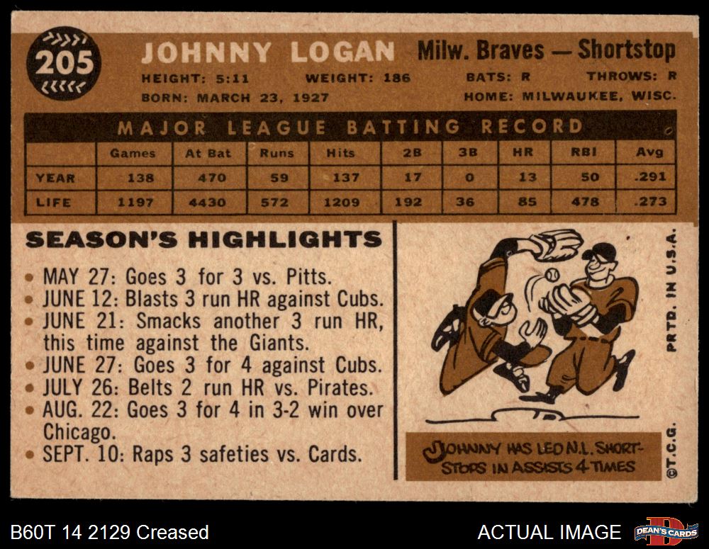 1960 Topps #205 Johnny Logan 2 - GOOD