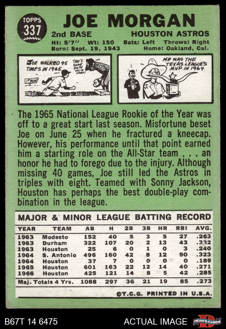 1967 Topps #337 Joe Morgan 4 - VG/EX