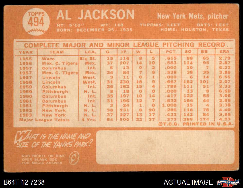 1964 Topps #494 Al Jackson 2 - GOOD