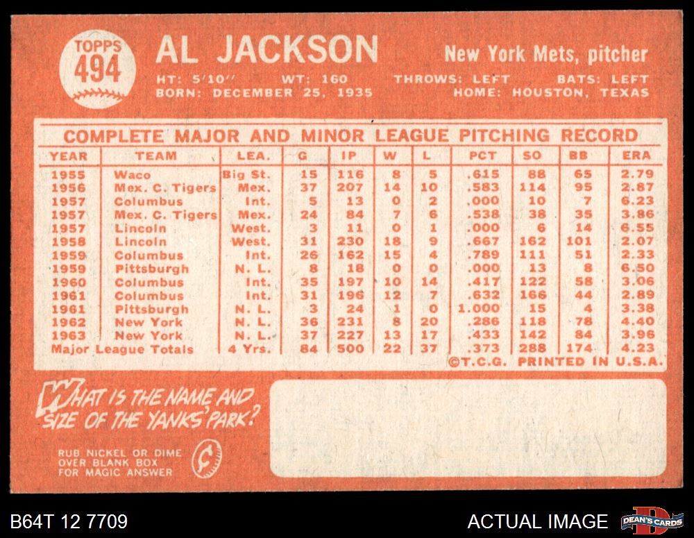 1964 Topps #494 Al Jackson 5 - EX