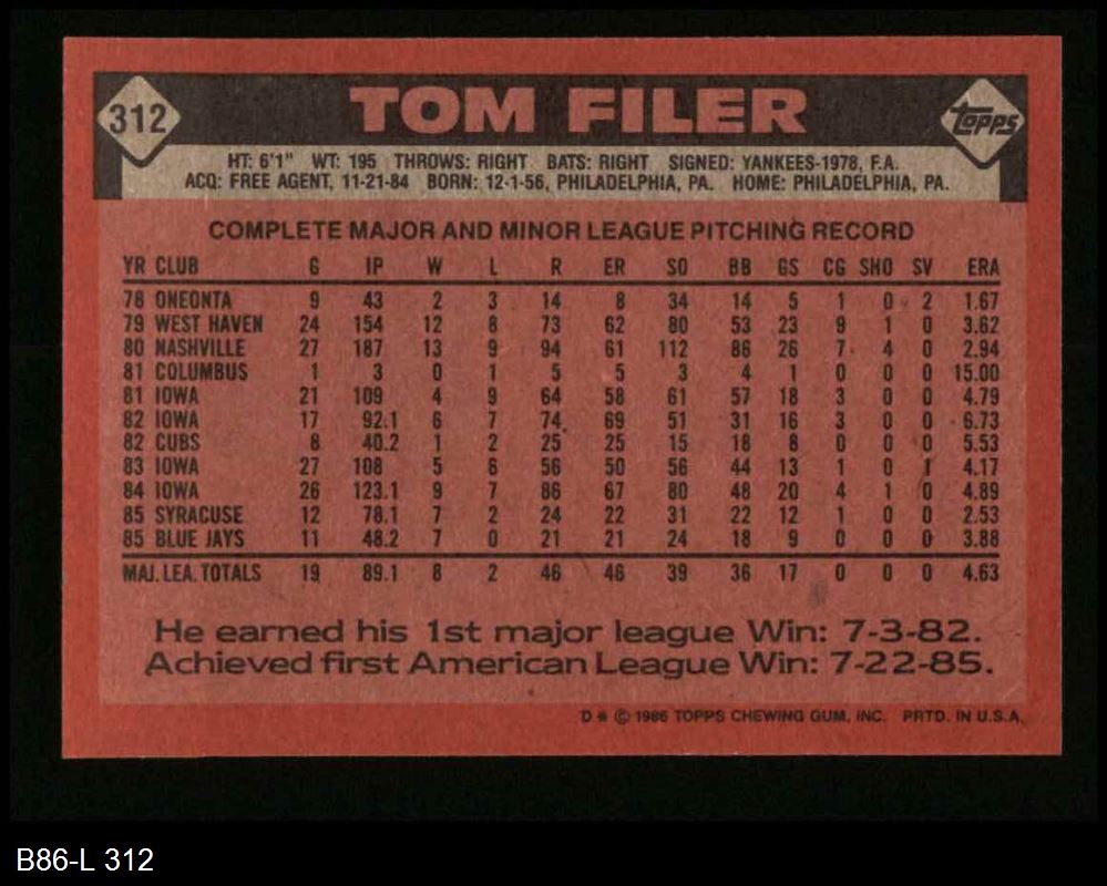 1986 Topps Baseball Cards (5,415 available)1986 Topps Blue Jays (252 available)