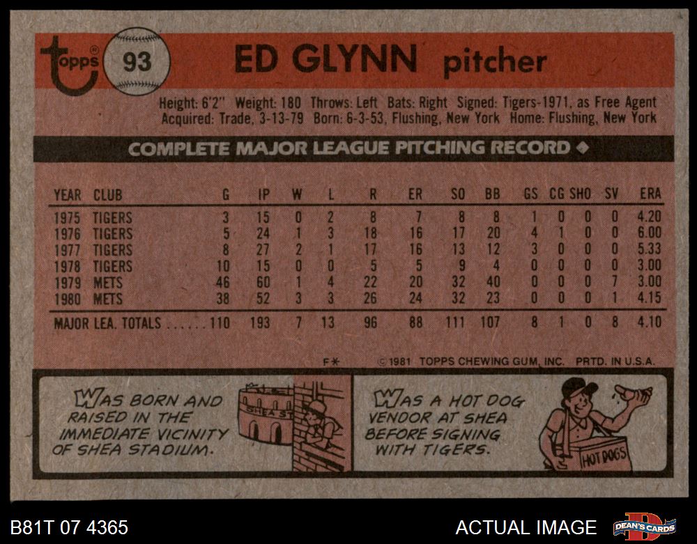 1981 Topps #93 Ed Glynn 7 - NM
