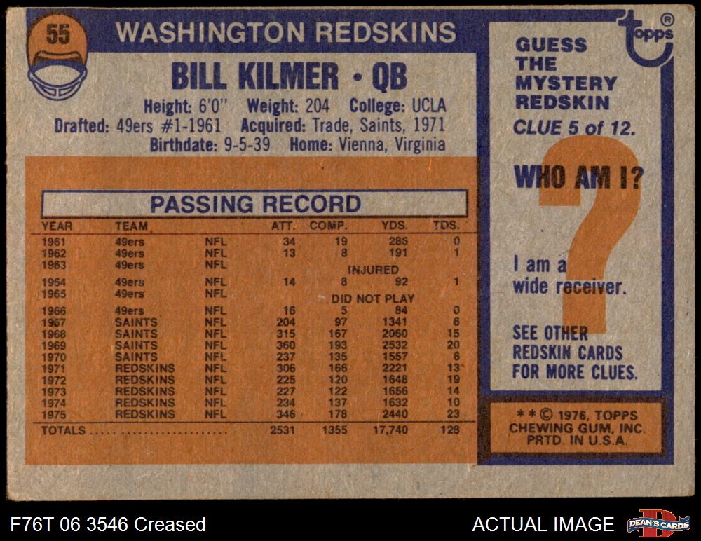 1976 Topps #55 Billy Kilmer 2 - GOOD