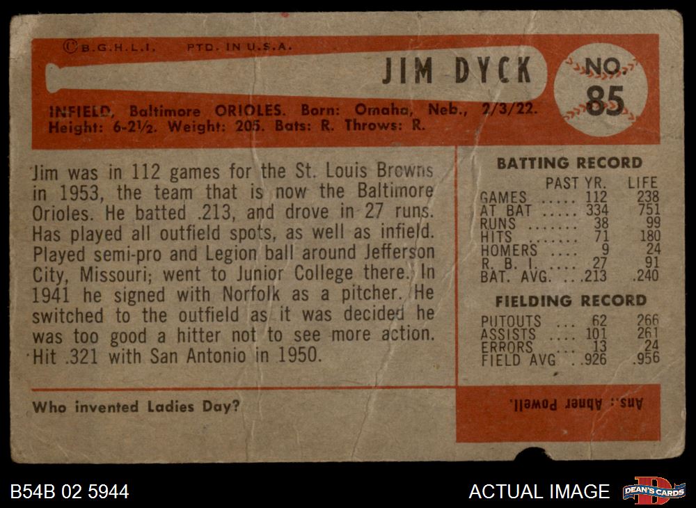 1954 Bowman #85 3B Jim Dyck AUTHENTIC