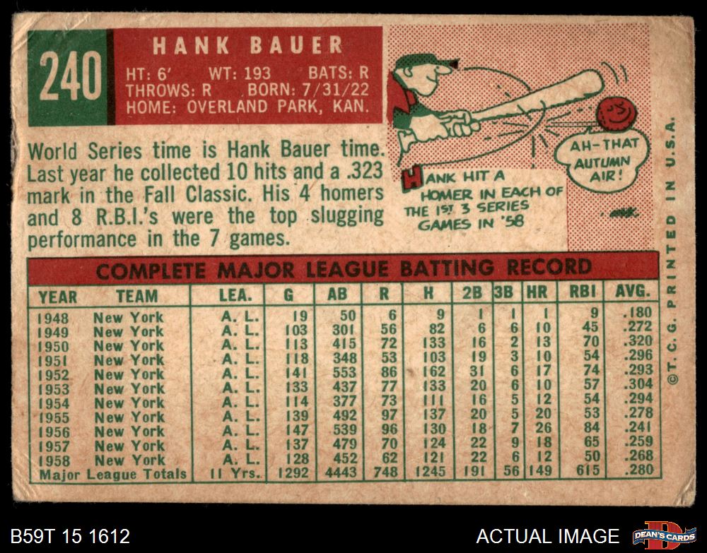 1959 Topps #240 Hank Bauer 1 - POOR