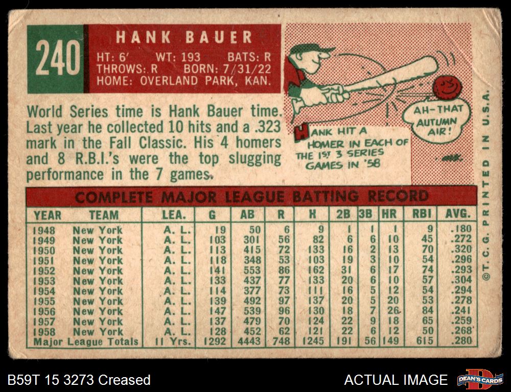 1959 Topps #240 Hank Bauer 1.5 - FAIR