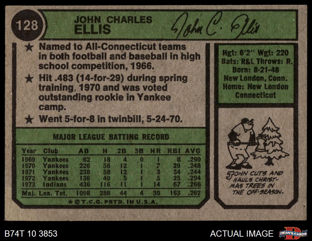 1974 Topps #128 John Ellis 3 - VG
