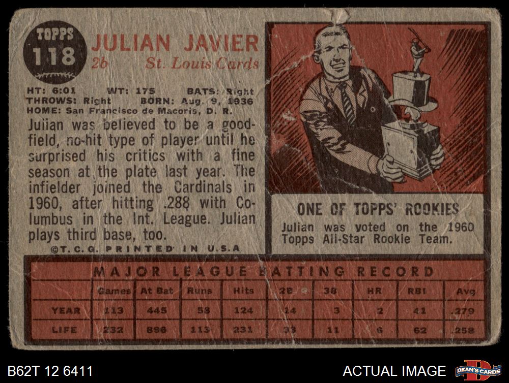 1962 Topps #118 GRN Julian Javier AUTHENTIC
