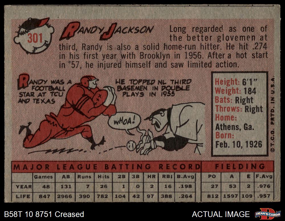 1958 Topps #301 Randy Jackson 2 - GOOD
