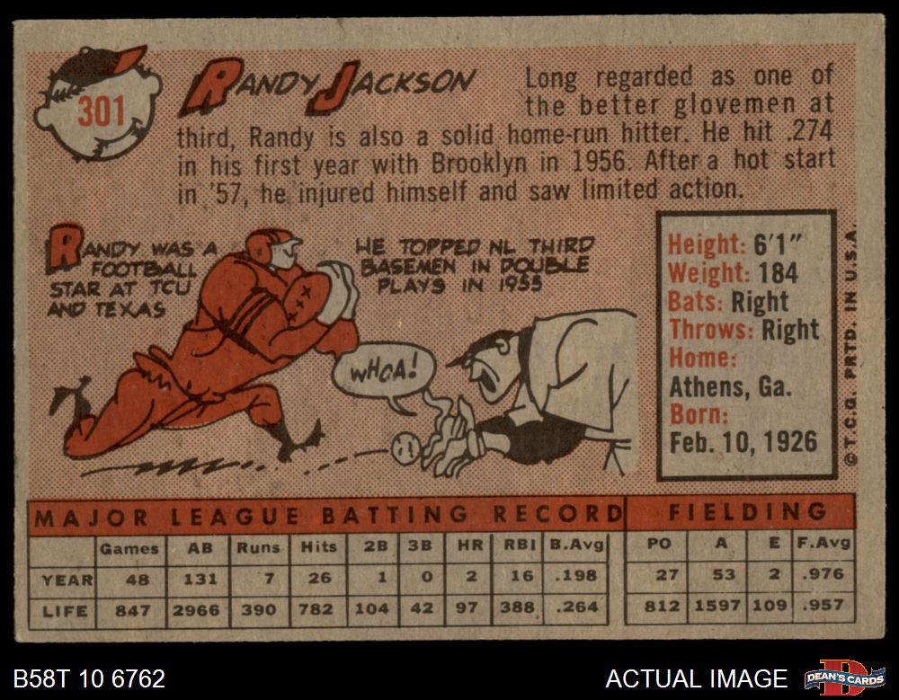 1958 Topps #301 Randy Jackson 3 - VG