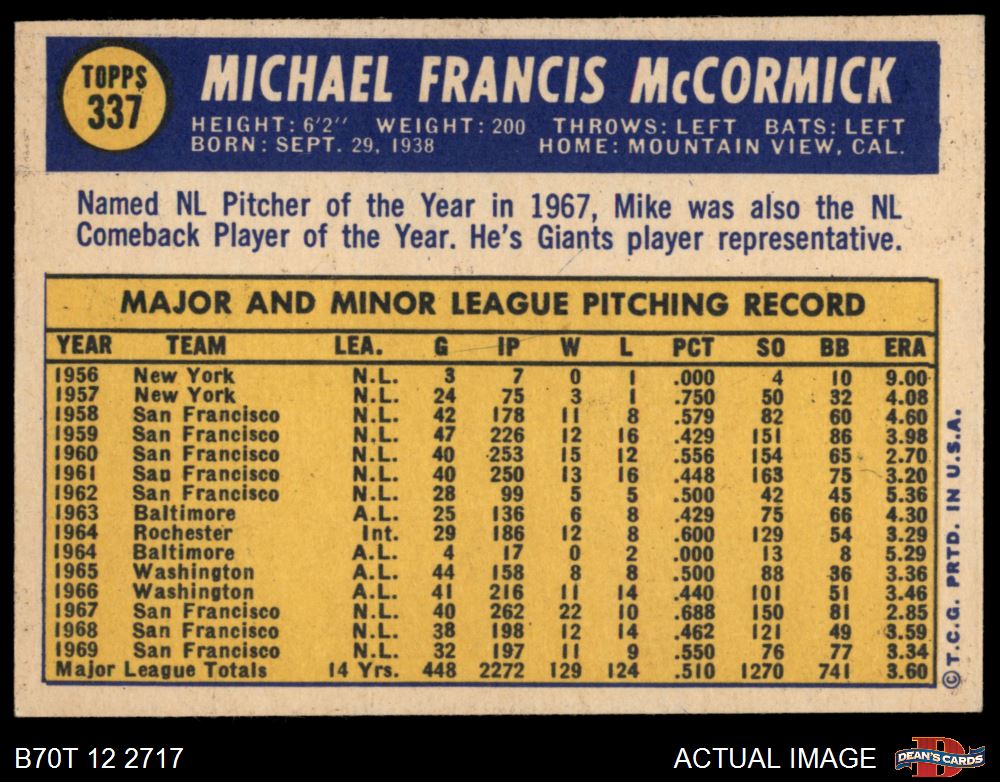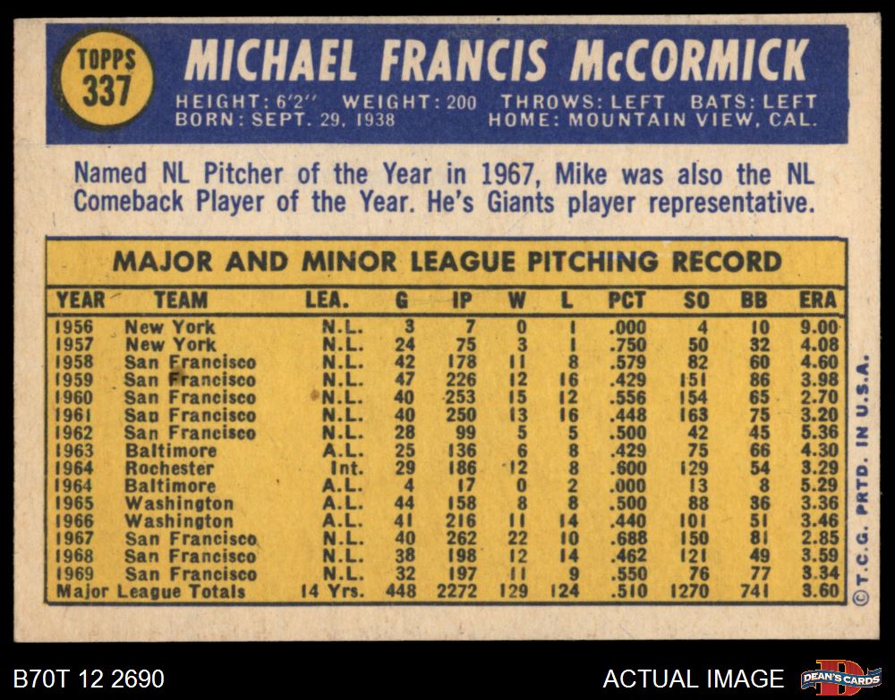 1970 Topps #337 Mike McCormick