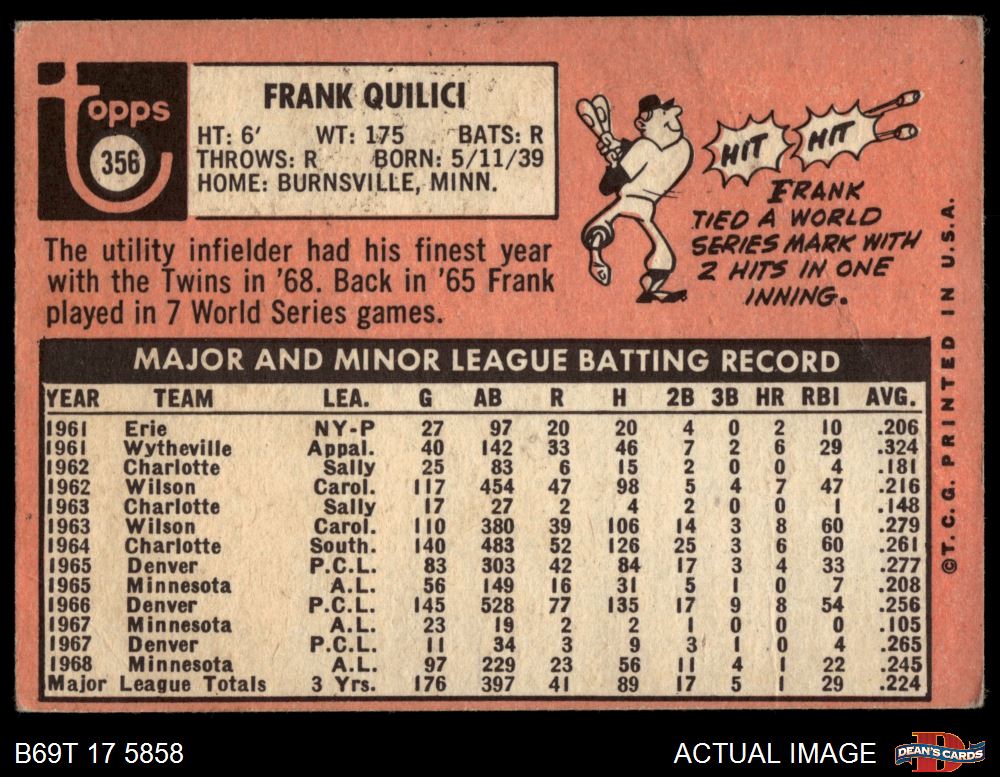 1969 Topps #356 Frank Quilici 1.5 - FAIR