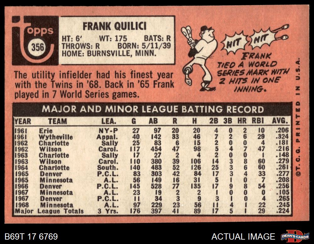 1969 Topps #356 Frank Quilici