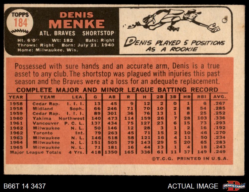 1966 Topps #184 Denis Menke 4 - VG/EX