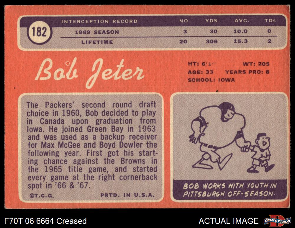 1970 Topps #182 Bob Jeter 2 - GOOD