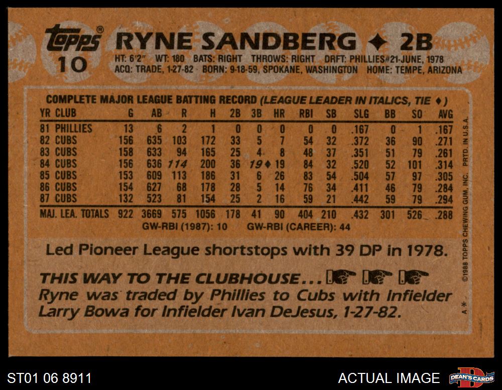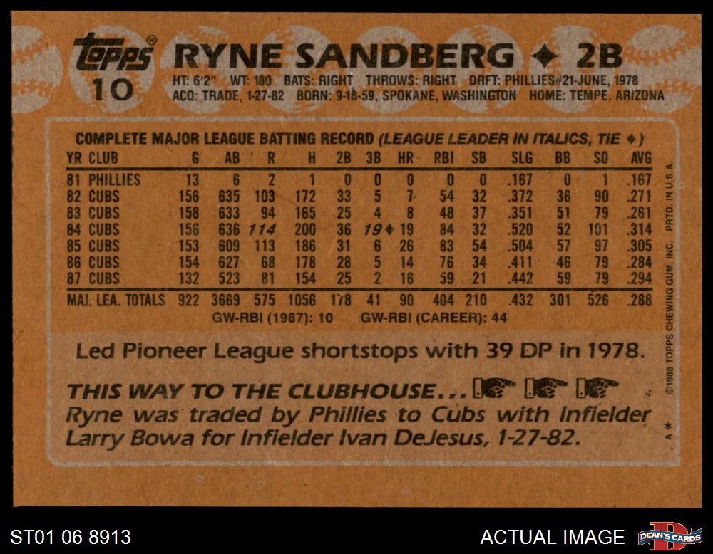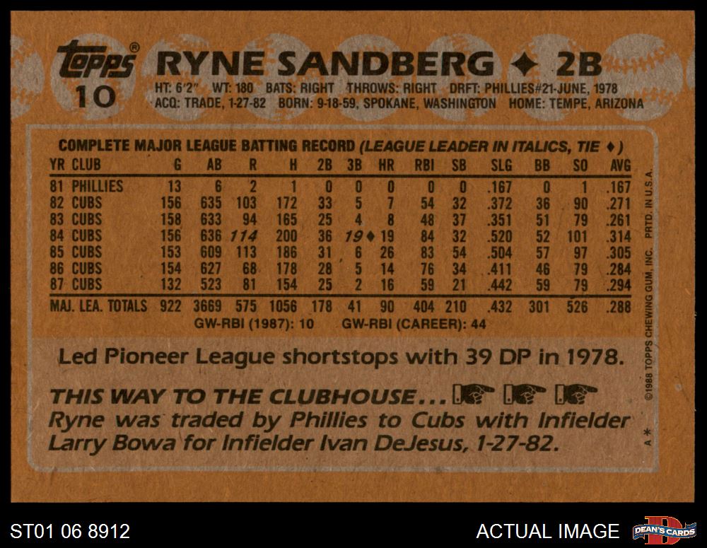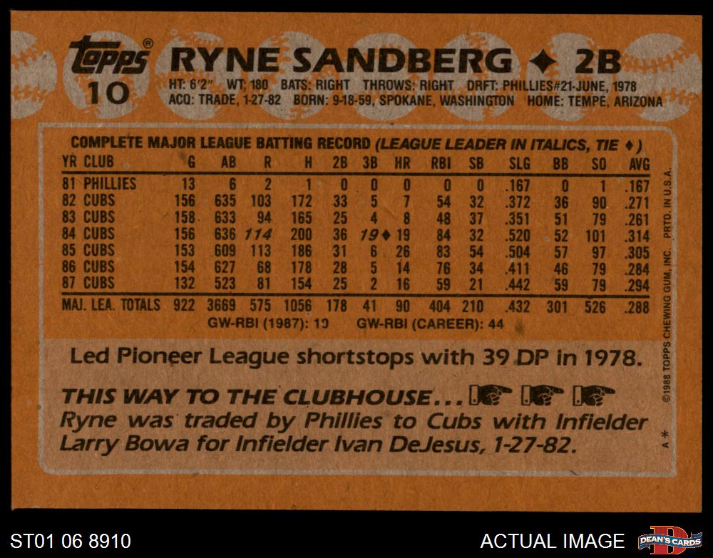 1988 Topps #10 Ryne Sandberg 8 - NM/MT