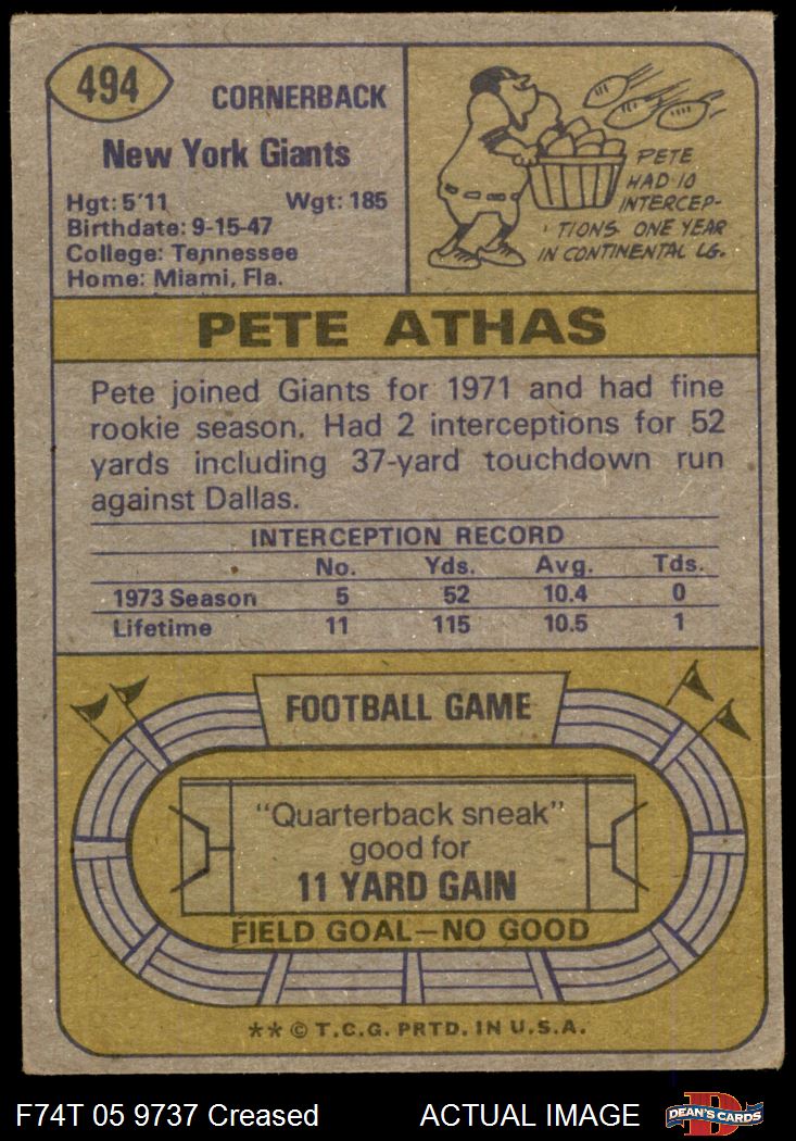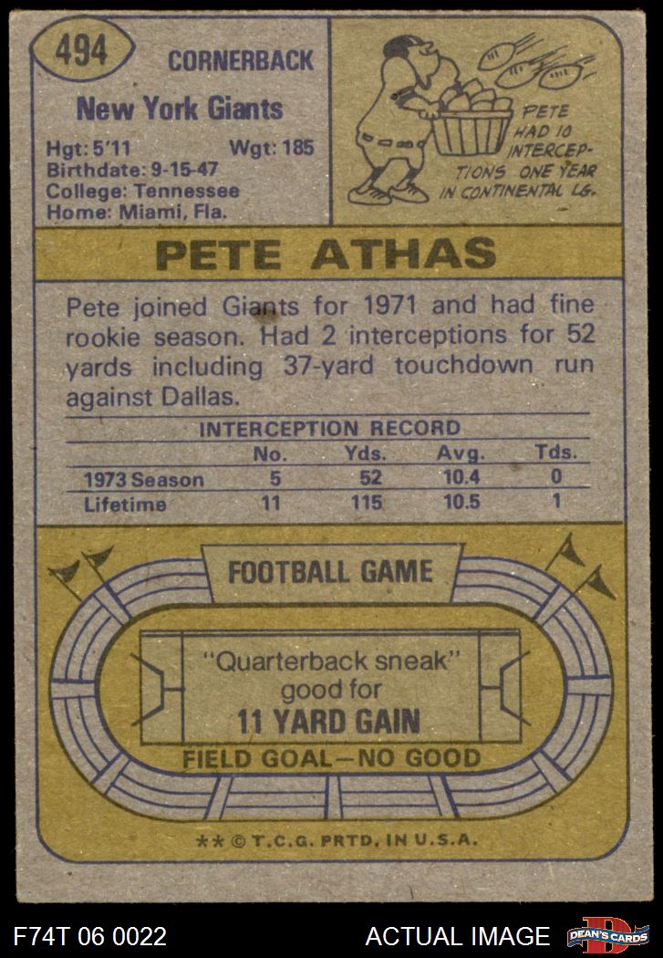 1974 Topps #494 Pete Athas 2 - GOOD