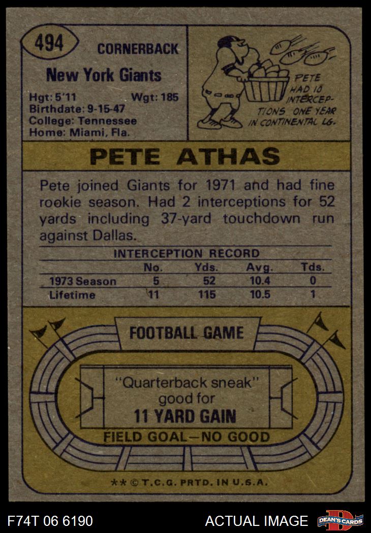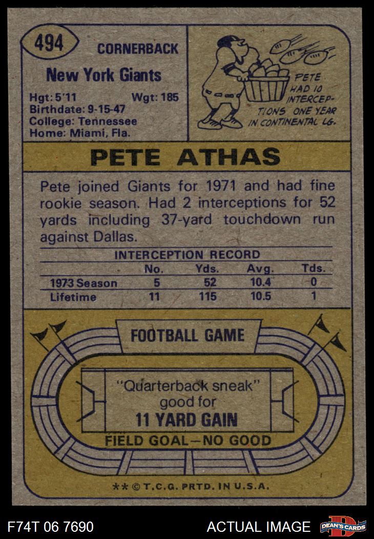 1974 Topps #494 Pete Athas 8 - NM/MT