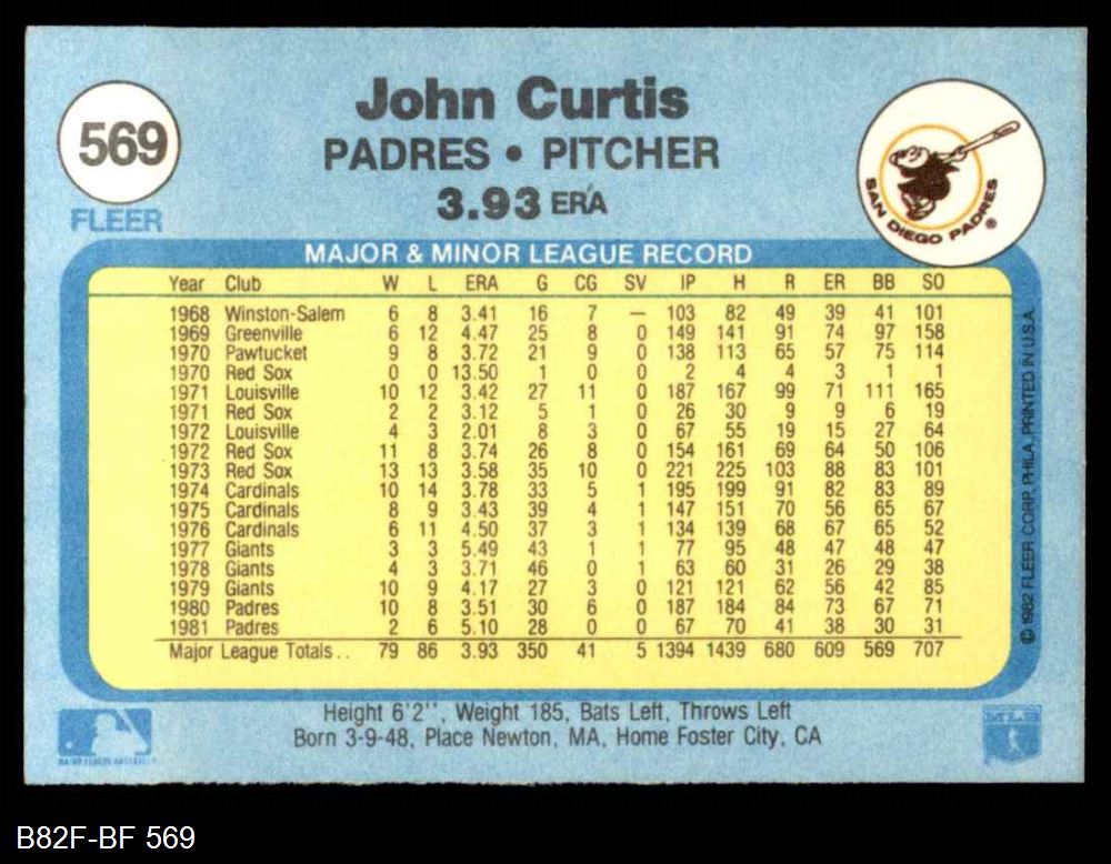 1982 Fleer #569 John Curtis