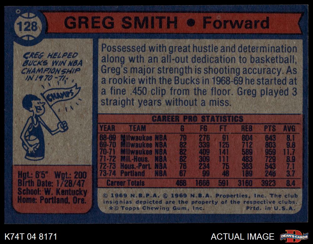 1974 Topps #128 Greg Smith 6 - EX/MT
