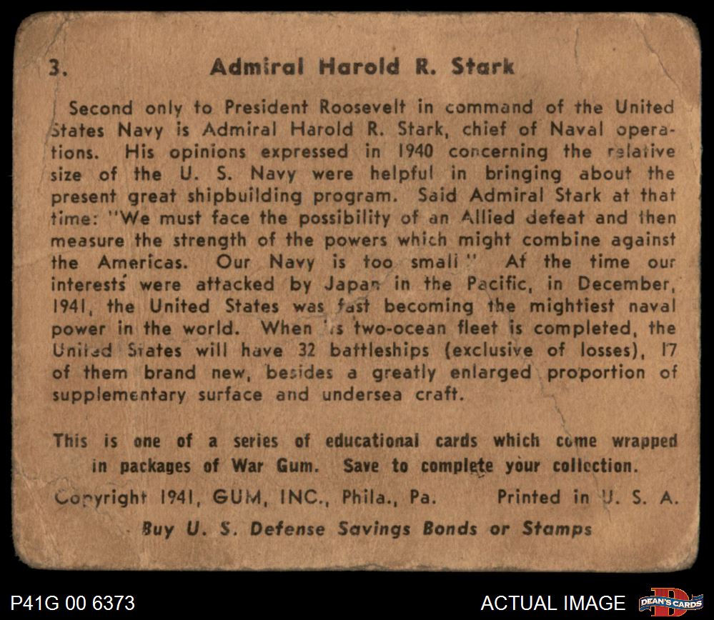 1941 War Gum #3 Admiral Harold Stark AUTHENTIC