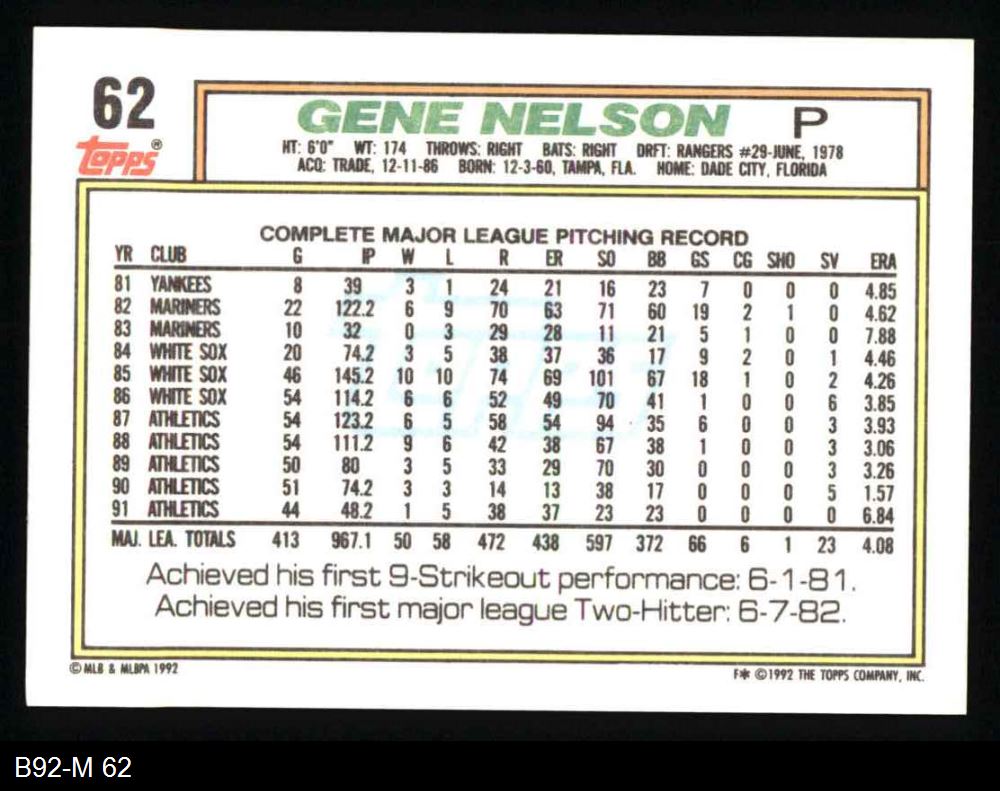 1992 Topps #62 Gene Nelson