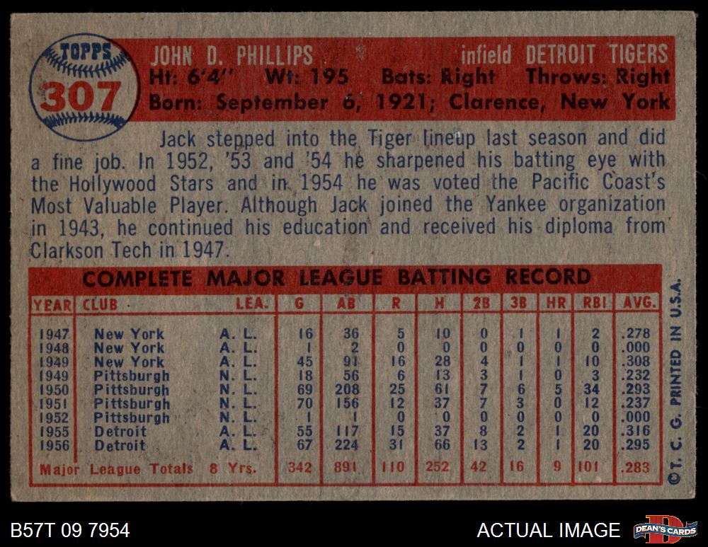 1957 Topps #307 Jack Phillips 4 - VG/EX