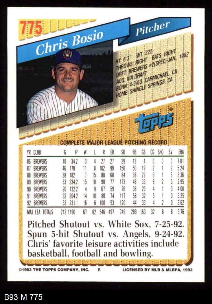 1993 Topps #775 Chris Bosio 8 - NM/MT