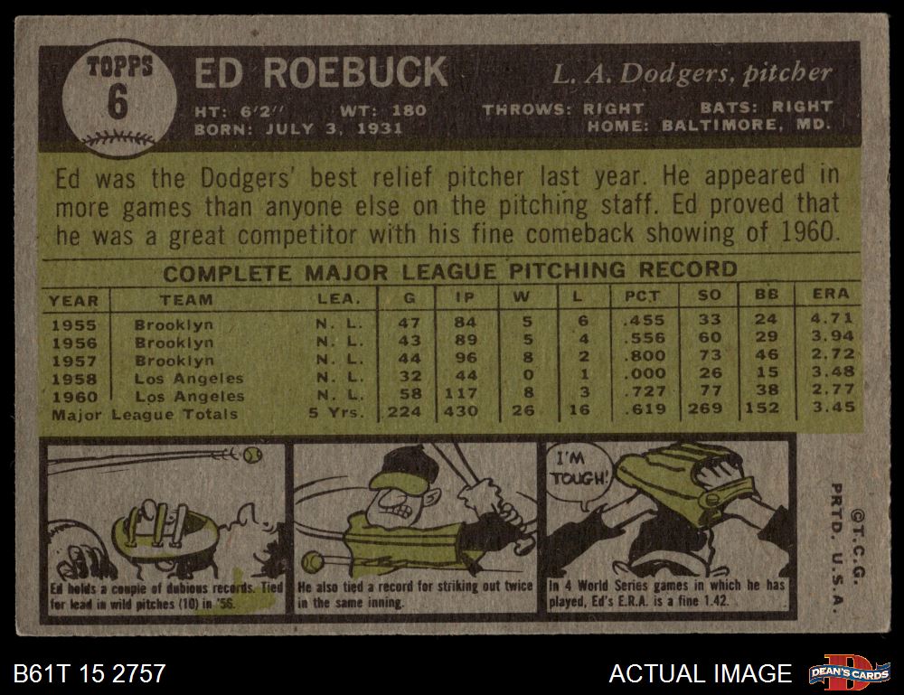 1961 Topps #6 Ed Roebuck