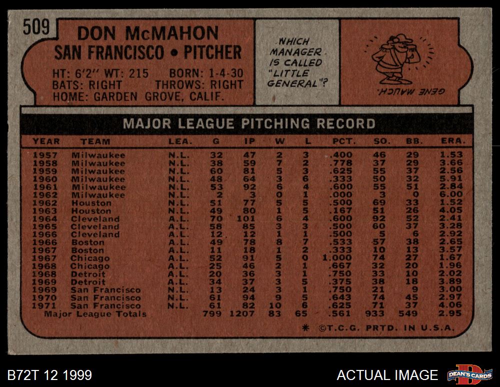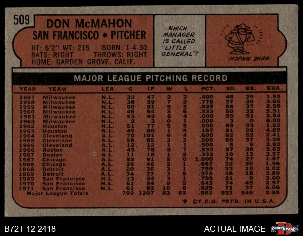 1972 Topps #509 Don McMahon