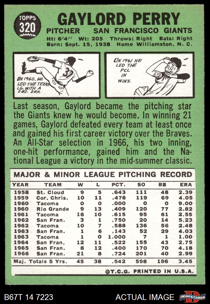 1967 Topps #320 Gaylord Perry