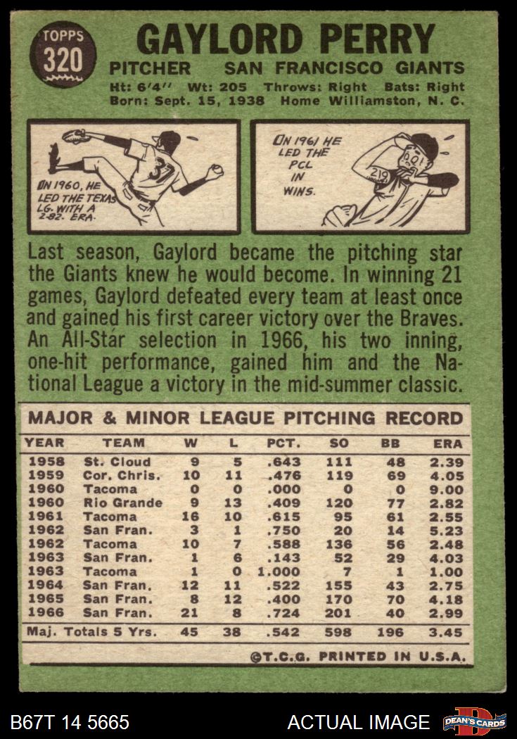 1967 Topps #320 Gaylord Perry 5 - EX