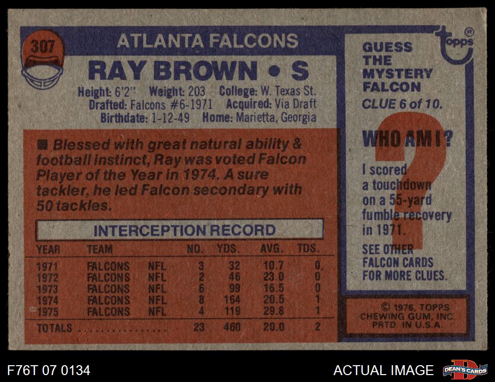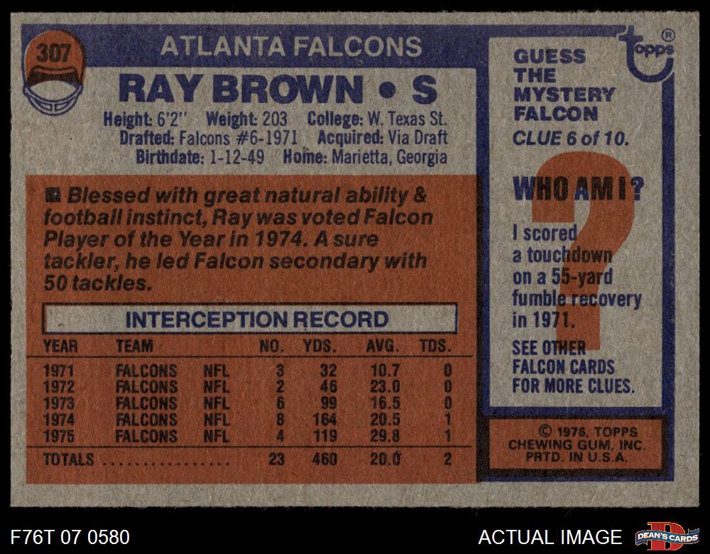 1976 Topps #307 Ray Brown