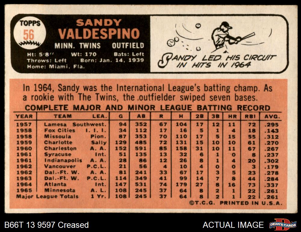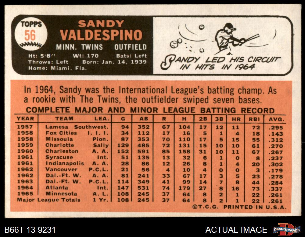 1966 Topps #56 Sandy Valdespino 2 - GOOD