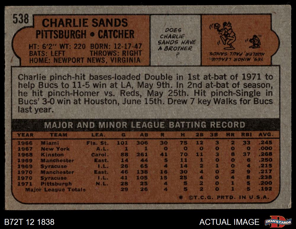 1972 Topps #538 Charlie Sands 3.5 - VG+