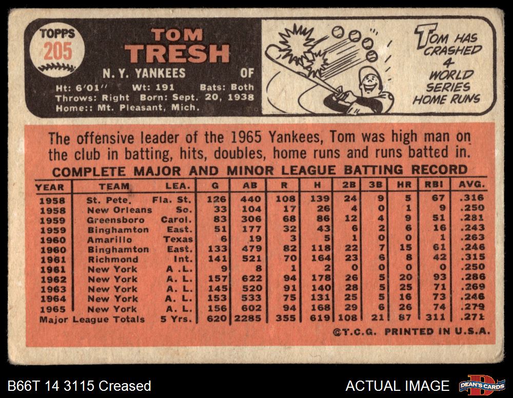 1966 Topps #205 Tom Tresh 1 - POOR