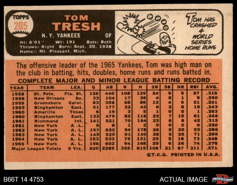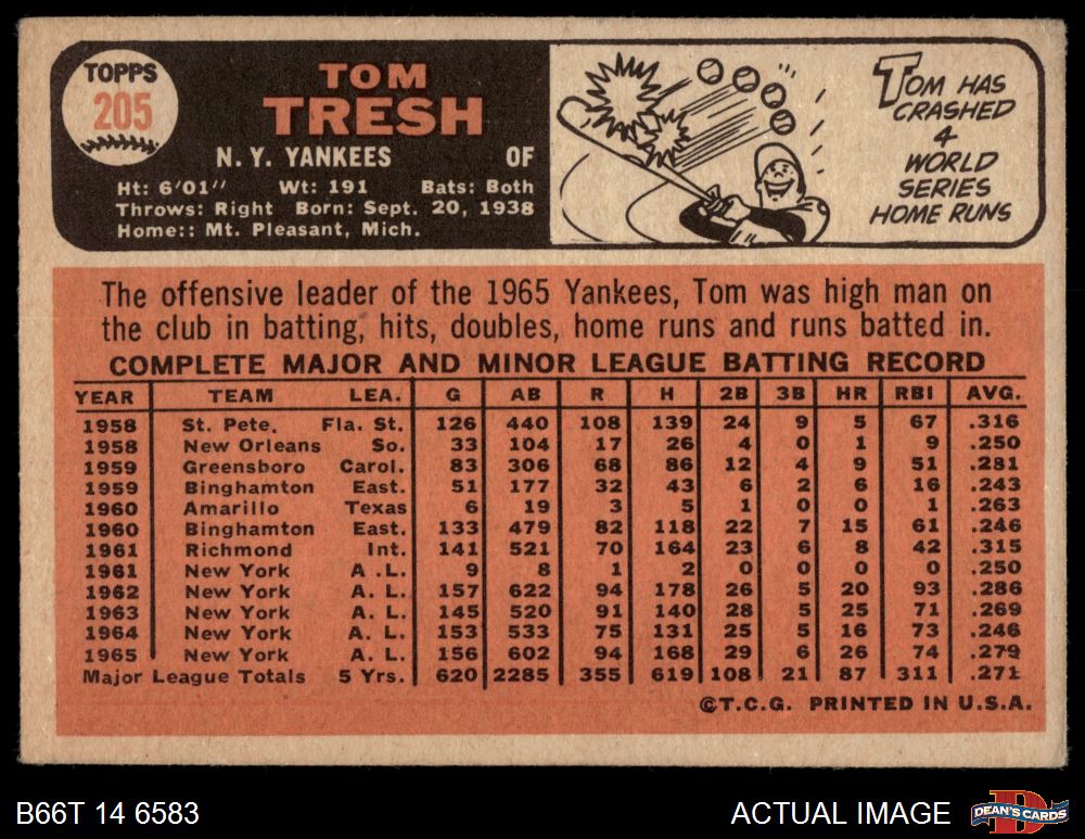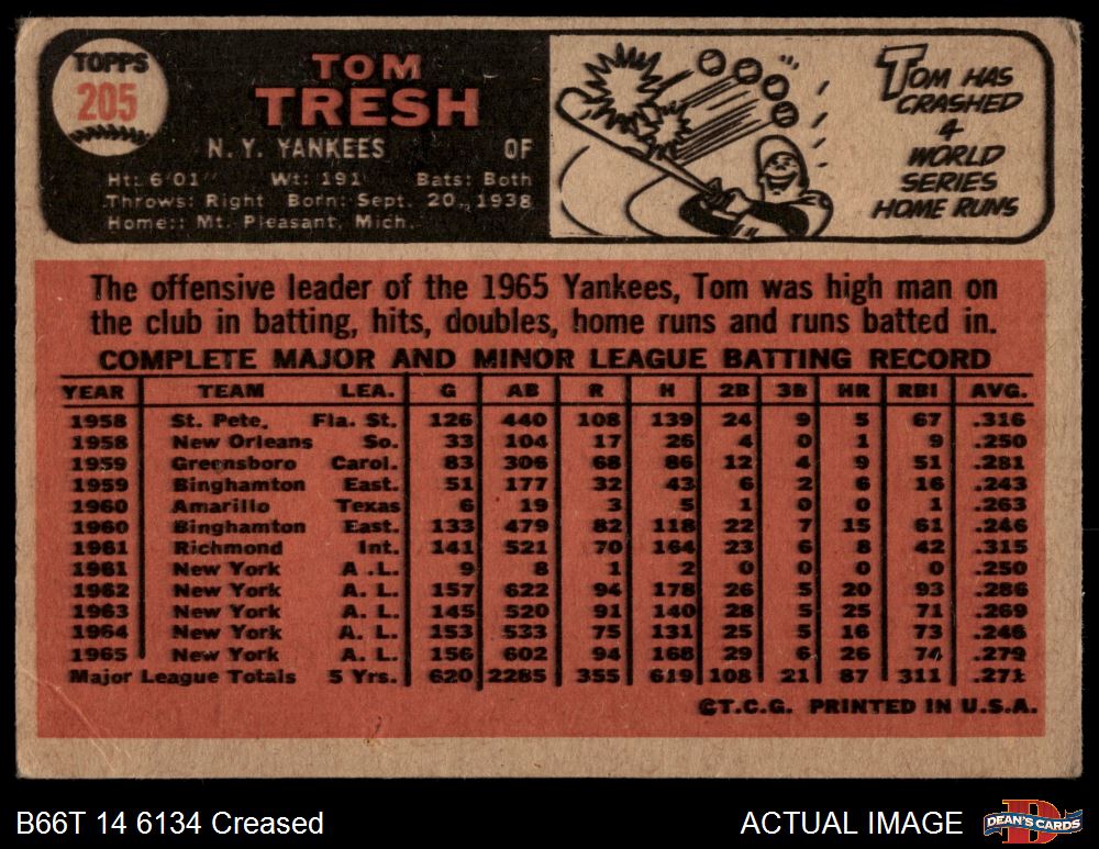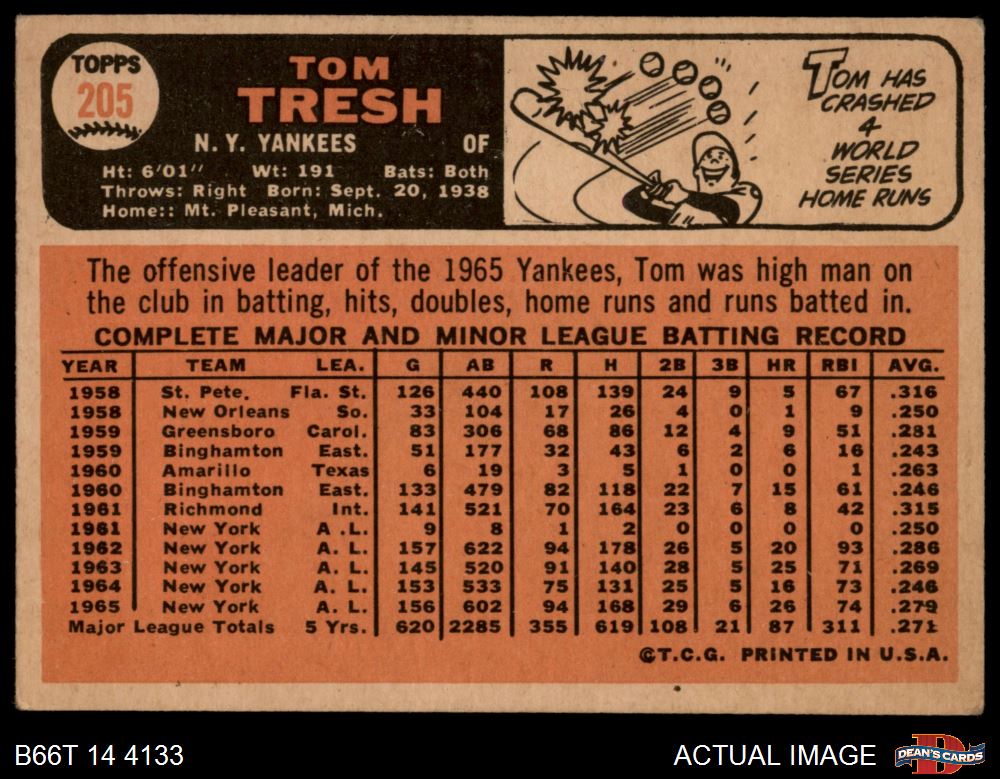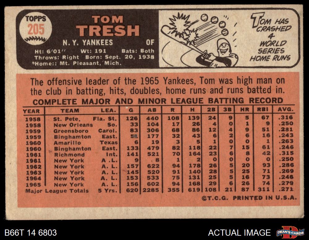 1966 Topps #205 Tom Tresh 2 - GOOD