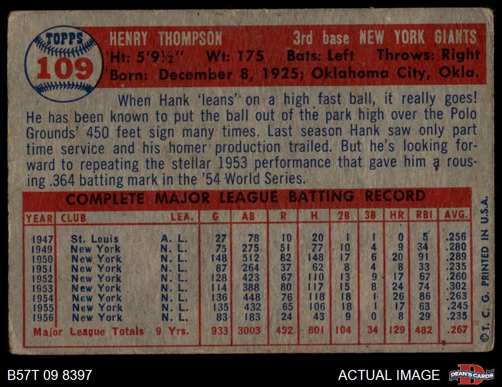 1957 Topps #109 Hank Thompson