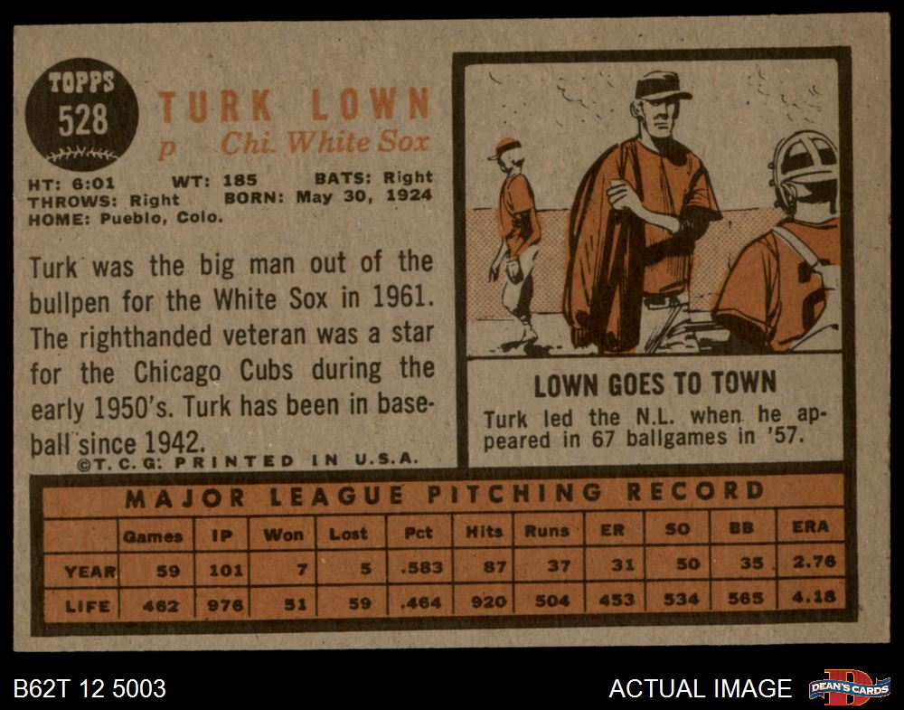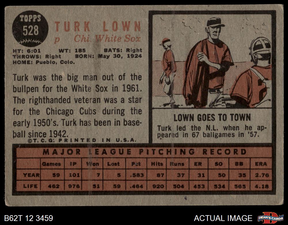 1962 Topps #528 Turk Lown 3 - VG