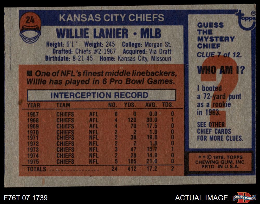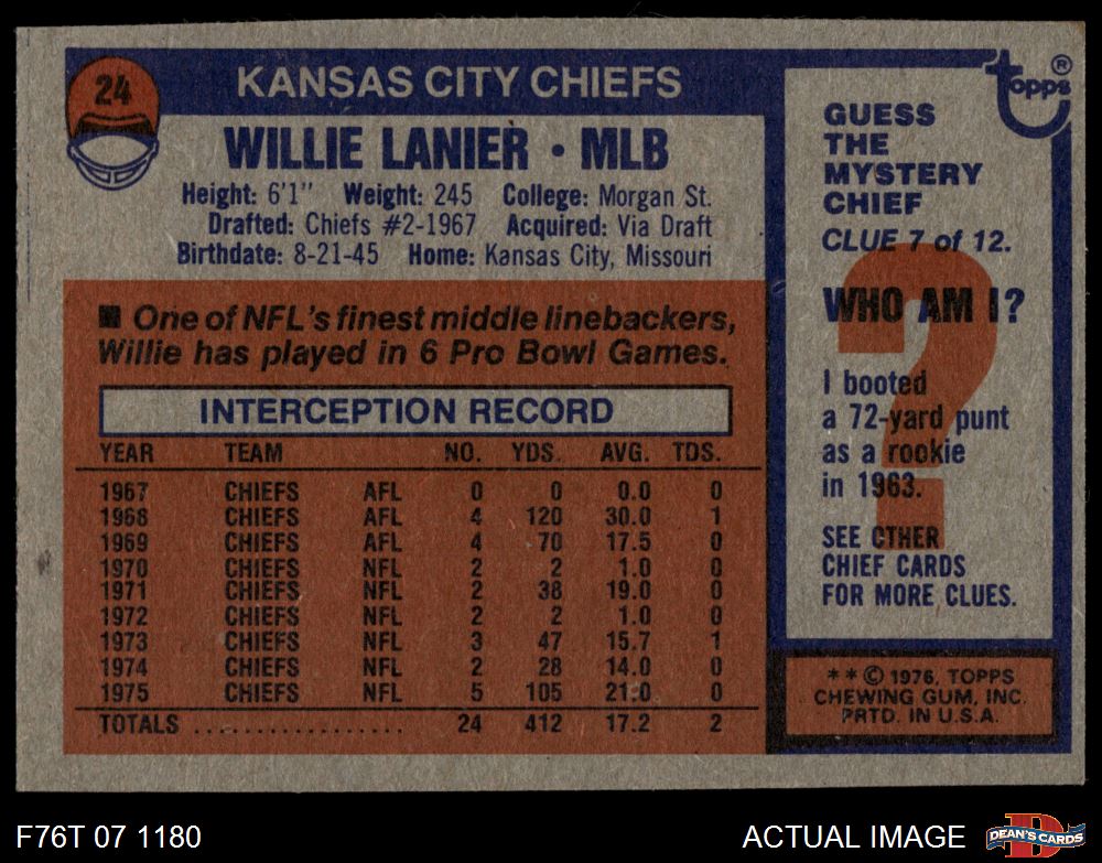 1976 Topps #24 Willie Lanier