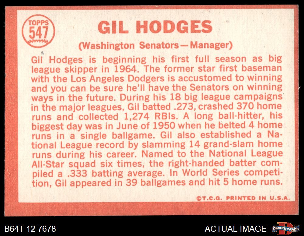 1964 Topps #547 Gil Hodges 4 - VG/EX