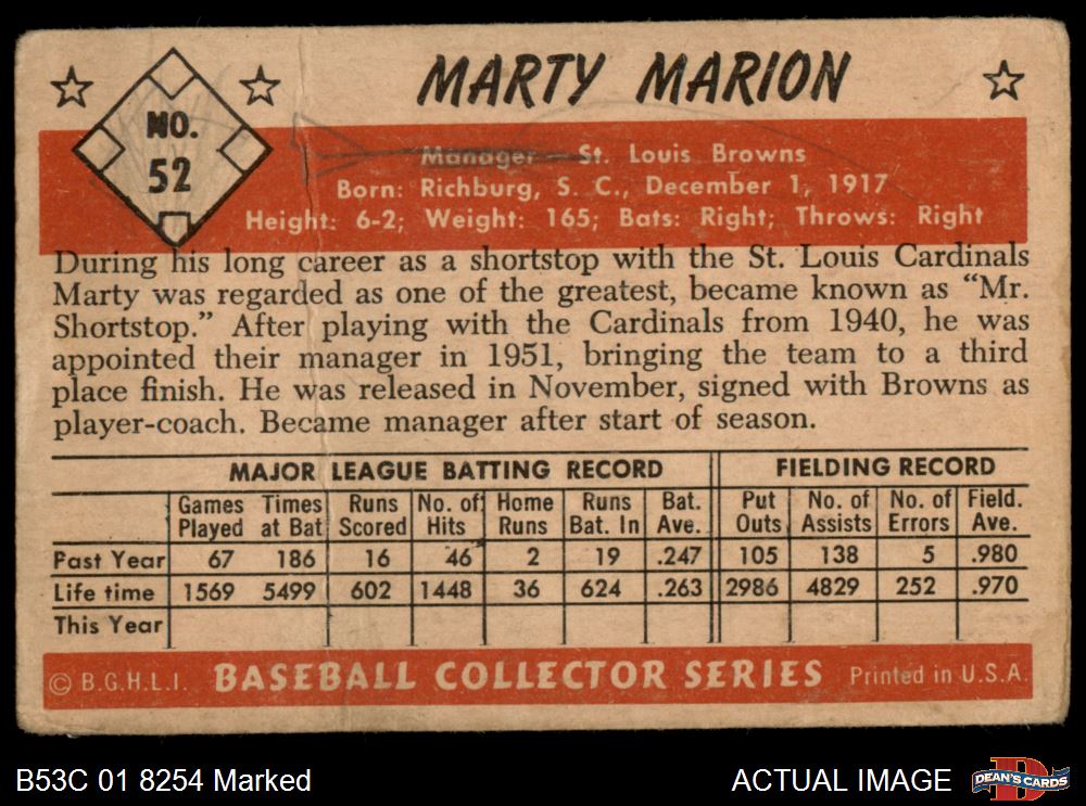 1953 Bowman #52 Marty Marion Front Thumbnail