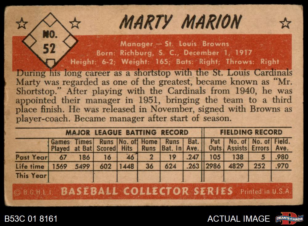 1953 Bowman #52 Marty Marion 2.5 - GD+