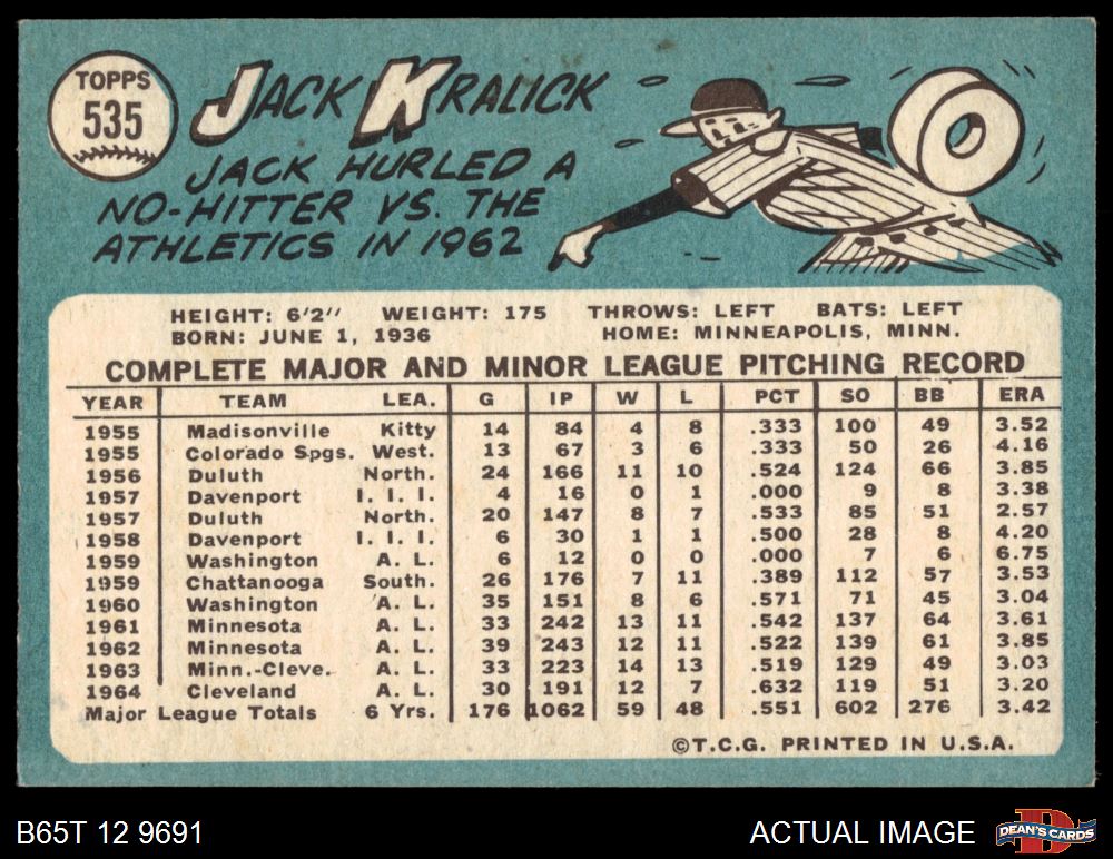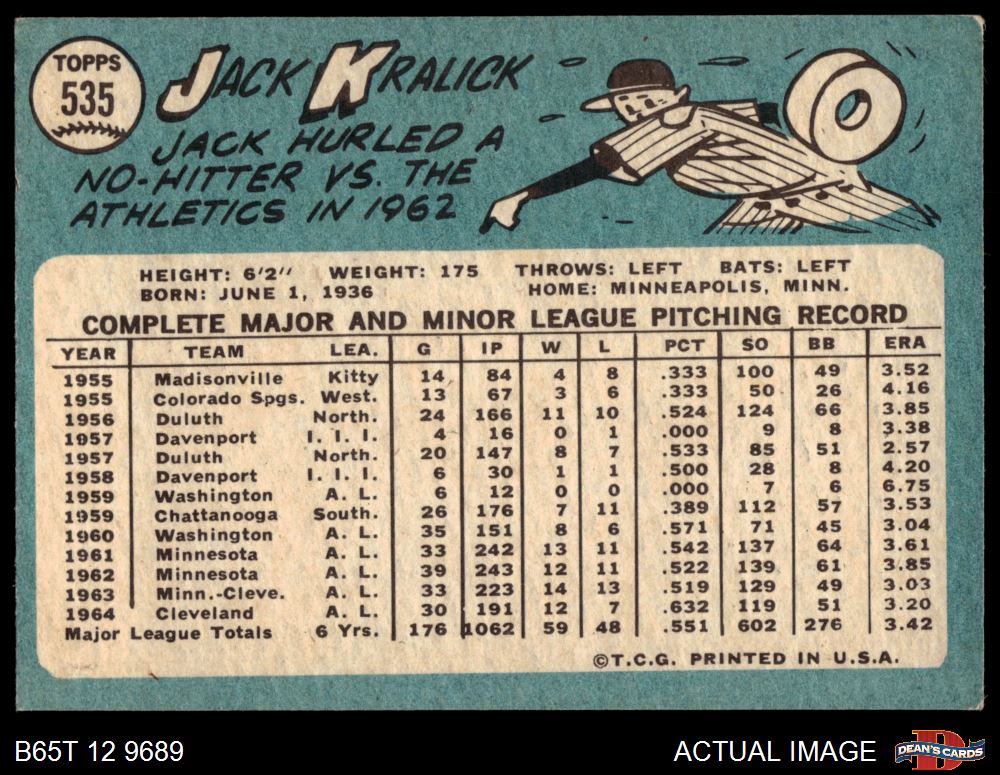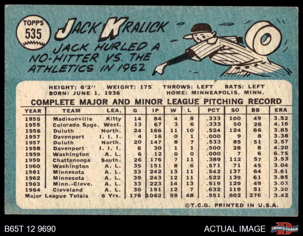 1965 Topps #535 Jack Kralick