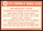 1964 Topps #479 - Dave Bakenhaster / Johnny Lewis Cardinals Rookies 4 - VG/EX