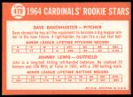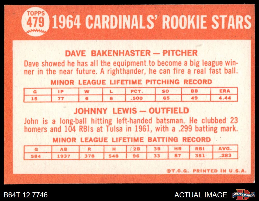 1964 Topps #479 - Dave Bakenhaster / Johnny Lewis Cardinals Rookies 7 - NM
