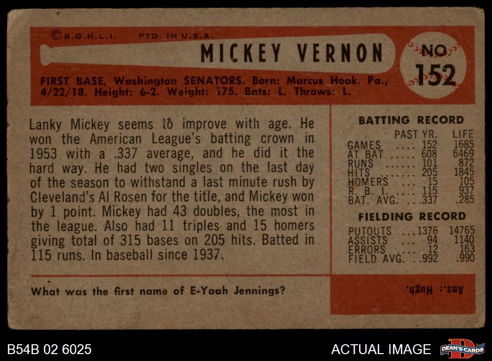 1954 Bowman #152 Mickey Vernon 1.5 - FAIR