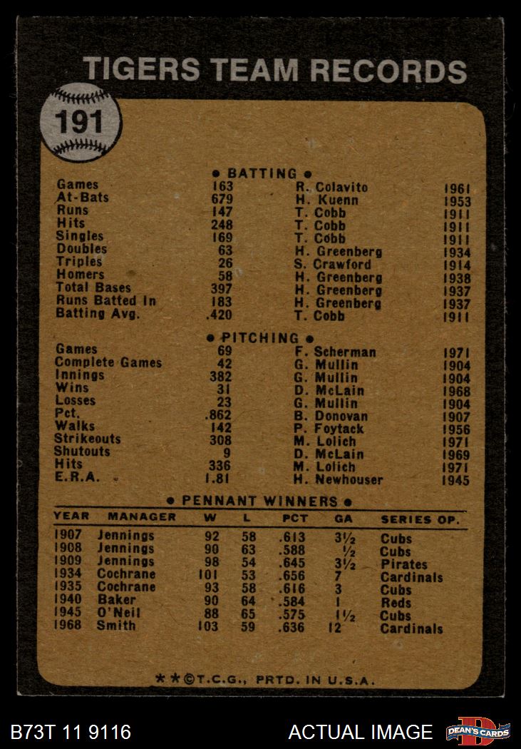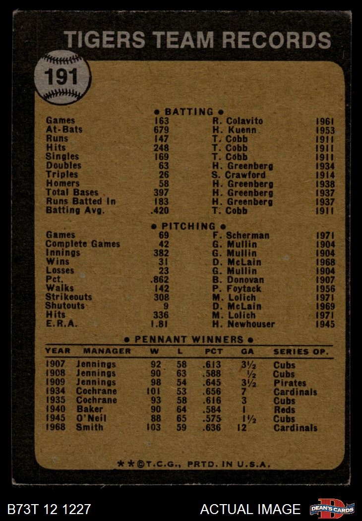1973 Topps #191 Tigers Team