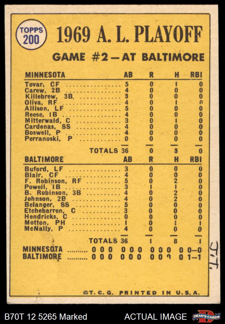 1970 Topps #200 - Boog Powell / George Mitterwald 1969 AL Playoff - Game 2 - Powell Scores Winning Run 1.5 - FAIR