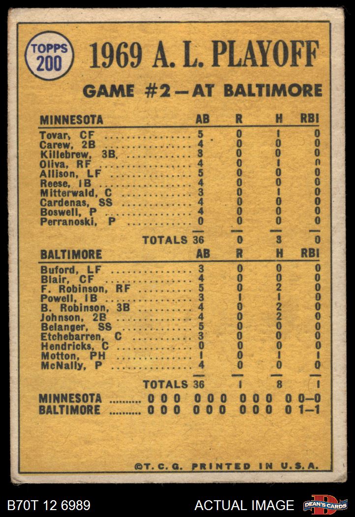 1970 Topps #200 - Boog Powell / George Mitterwald 1969 AL Playoff - Game 2 - Powell Scores Winning Run 2 - GOOD